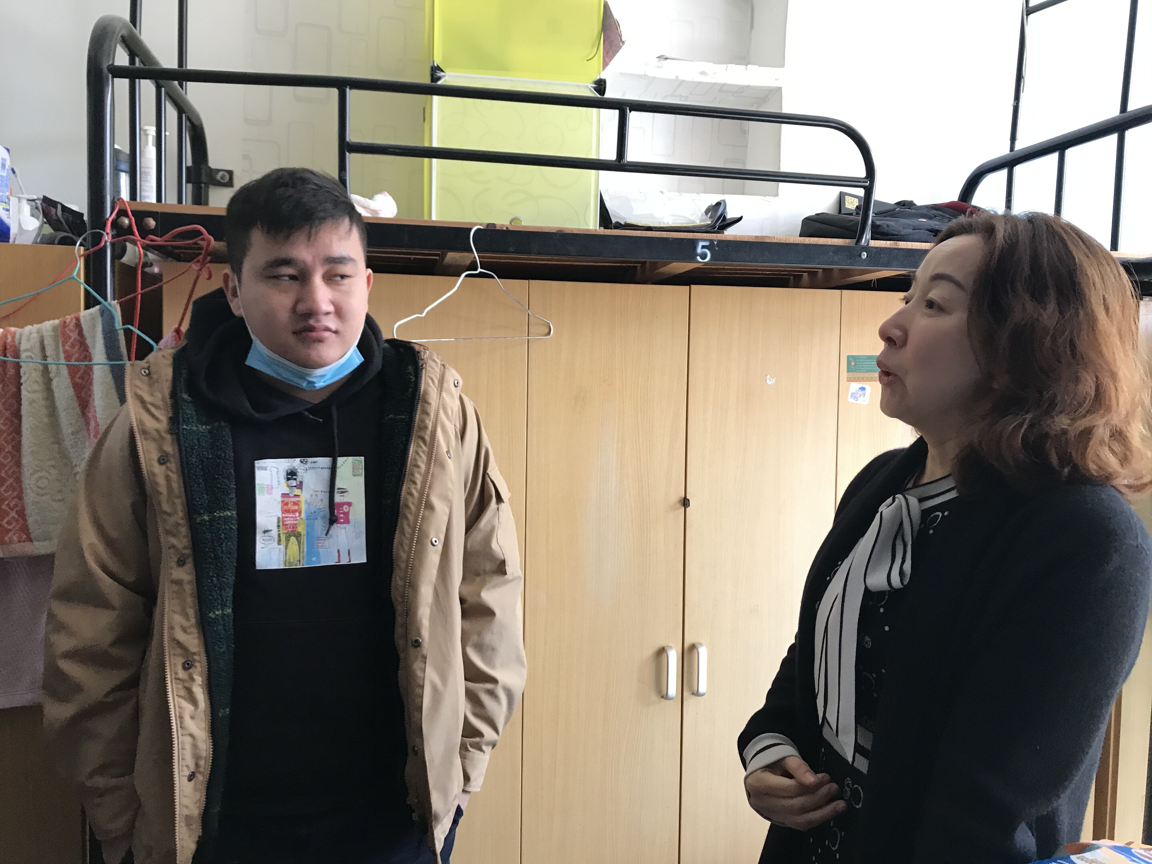 随后,院领导与2017级辅导员董叶斓、2018级辅导员崔玮嵛来到学生宿舍看望在校过年的本科生刘师源、帕尔哈提·吾斯曼、艾力扎提·马合木提江、李珊珊和马跃宁。孔书记向同学们表达了学院领导的关心和问候,叮嘱同学们务必做好个人防护、平时适当增加运动频率,提高身体素质。陈书记也详细了解、询问了大家寒假期间的生活、学习安排,希望同学们每天多与家人联系,虽然是云过年,但依然是个团圆年。